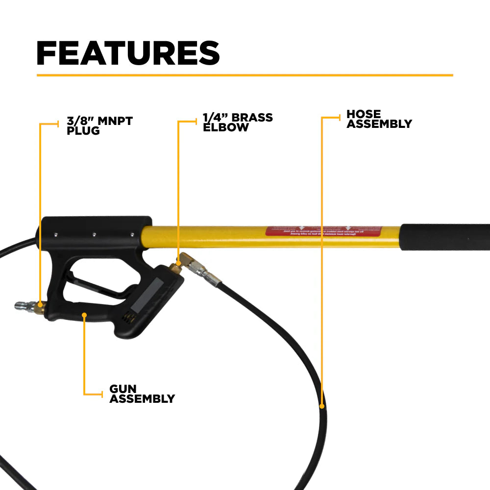 Compatible with most gas and electric pressure washers up to 5,000 PSI and 200°F (93°C), this wand is built to handle the demands of serious cleaning—without the need for extra equipment or risky setups.