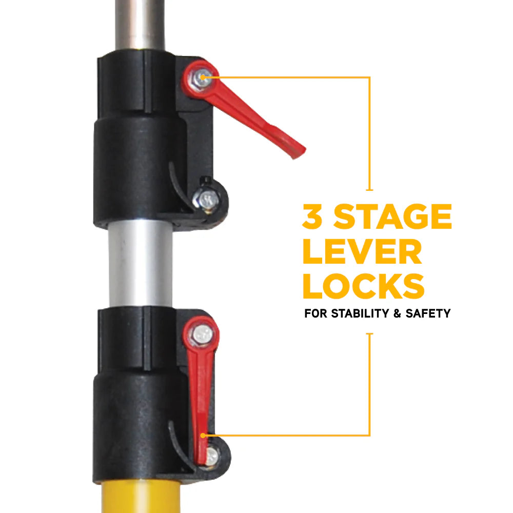 Three-Stage Extension Pole – Reinforced aluminum or fiberglass construction with two secure lever locks for stable extension and retraction.