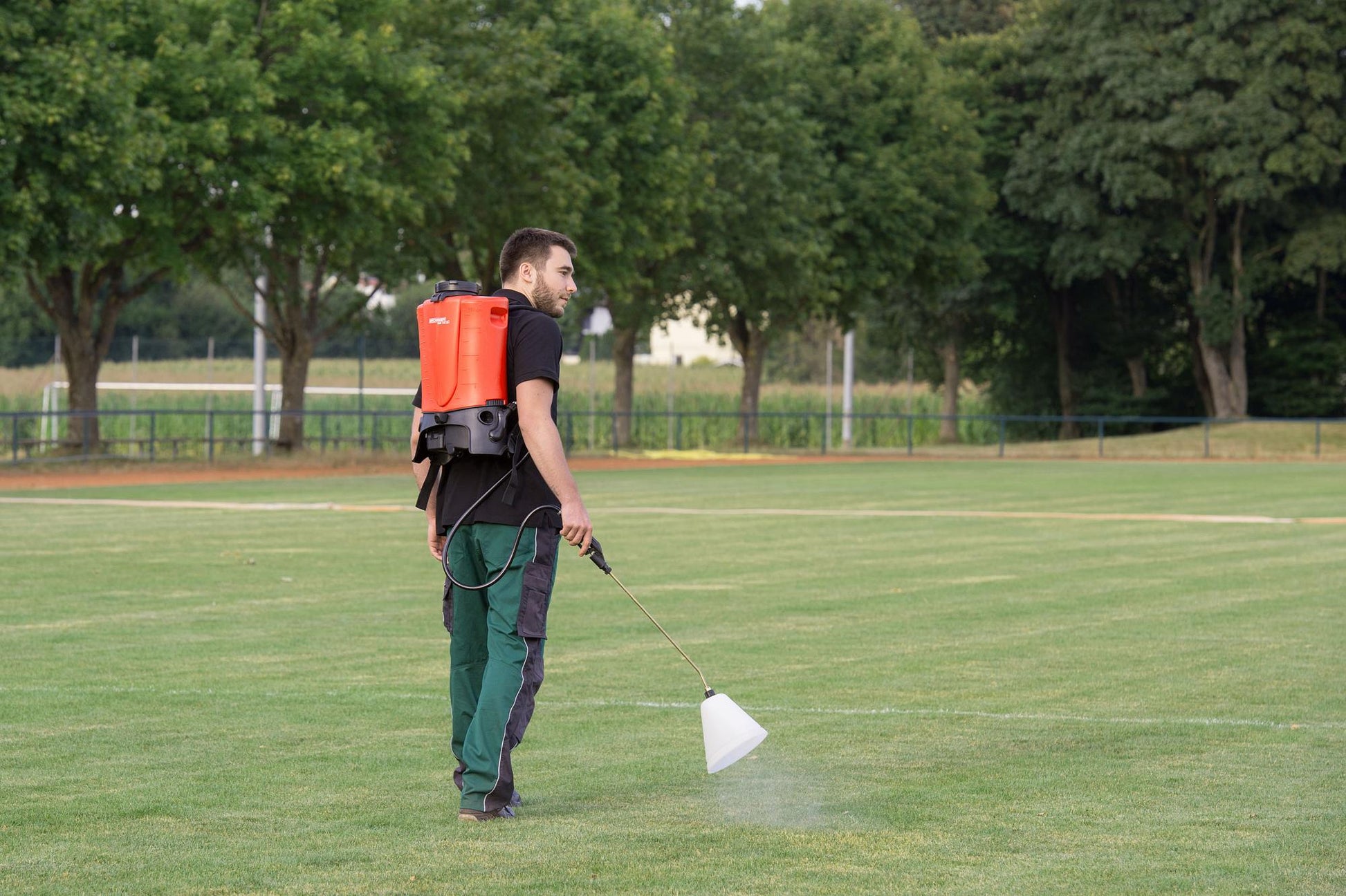 Pressure controlled battery backpack sprayer with CAS system.